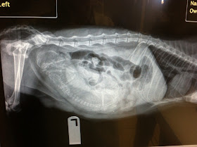 X-ray (more correctly "radiograph") of a very very large fetus in the very very sick cat.